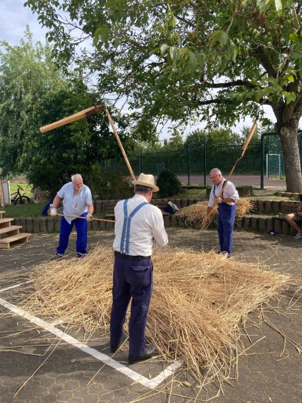 Erntedankfest mit Motivgruppen Nach einer vierjährigen Vakanz war es endlich wieder zu hören, das helle Singen der geschliffenen Sensen und das klingende Schlaggeräusch beim Bearbeiten des Ambosses in der…